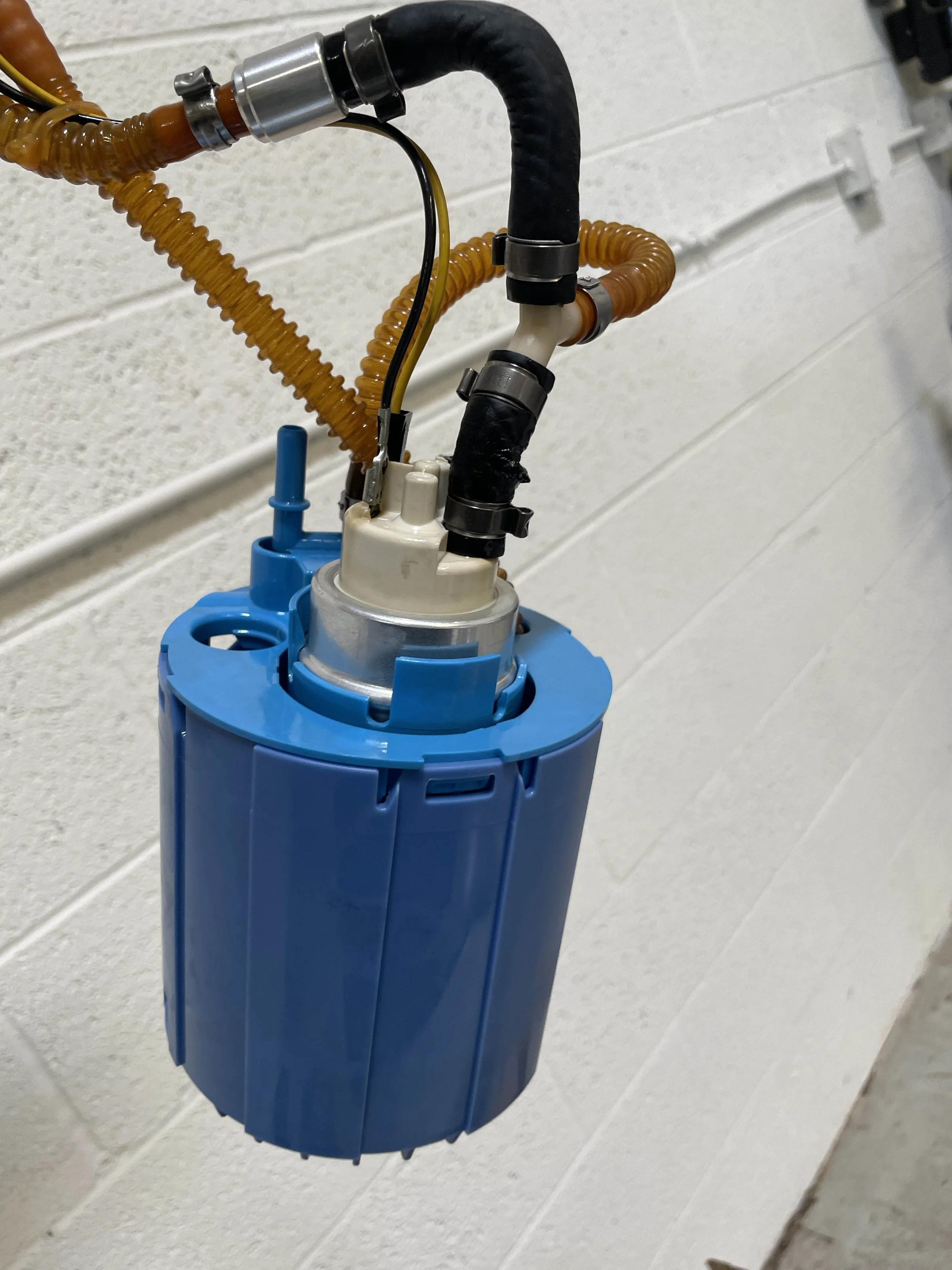 Fuel pump with a ruptured rubber hose (black)